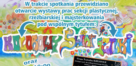 Zapraszamy na zakończenie sezonu, a w czasie trwania – otwarcie wystawy prac sekcji artystycznych p.t. Kolorowy Świat Sztuki oraz premiera spektaklu teatru Krejzole p.t. „Jedną